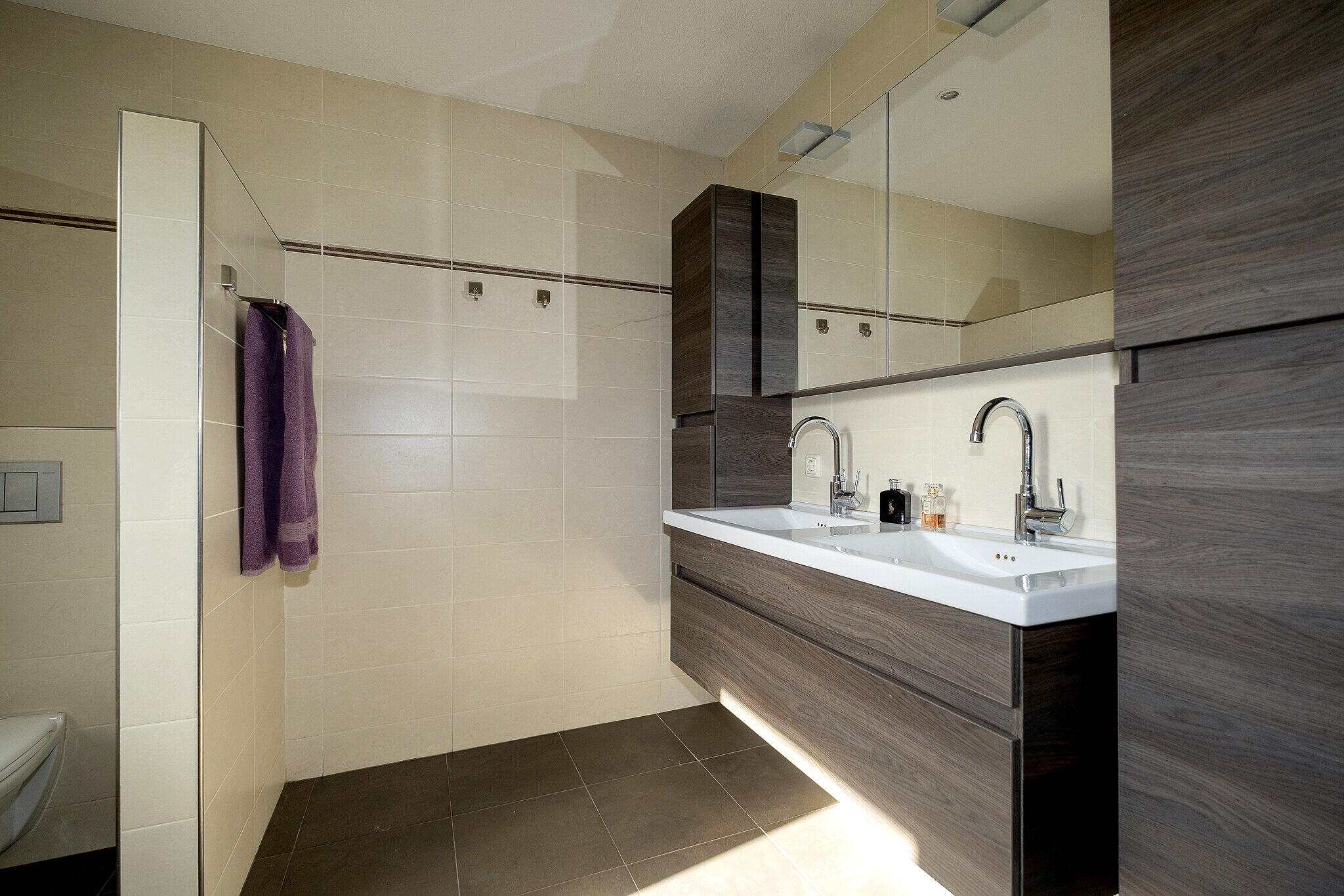 - Toilet, douche, dubbele wastafel, wastafelmeubel
